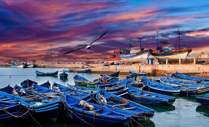 From Agadir, the journey continues along the Atlantic coast for nearly 200 km to Essaouira, a charming city known for its whitewashed houses with blue doors and windows, creating a picturesque seaside image. Founded in the 16th century and historically called Mogador by the Portuguese, its Berber name means “the wall,” reflecting the original fortress walls surrounding the city. Dinner and overnight stay will be at a hotel in Essaouira.