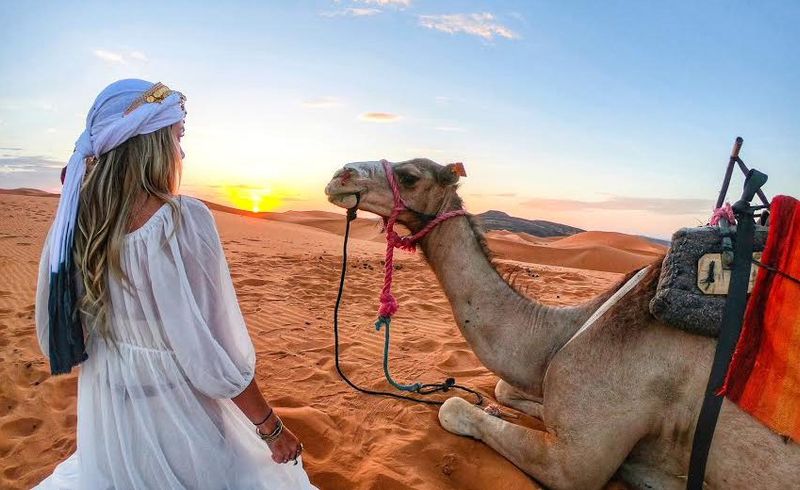 By late afternoon, you arrive in Merzouga at the edge of the Sahara Desert. Here, you will begin a camel trek across the golden dunes of Erg Chebbi, a unique experience lasting about 45 minutes. As the sun sets over the dunes, you will reach your desert camp, where a traditional dinner will be served. Spend the evening enjoying Berber music around the campfire and relax under a sky filled with stars, before an unforgettable overnight stay in desert tents.